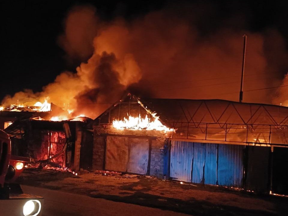 Сигнал о ЧП в пожарно-спасательный отряд поступил в 01:57. На месте было установлено, что на улице Мира полыхают строения общей площадью около 280 квадратных метров. Для ликвидации огня были задействованы шесть пожарных стволов и два звена газодымозащитной службы.