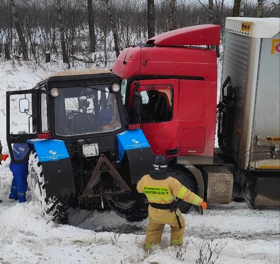 В Самарской области столкнулись трактор-снегоуборщик и большегруз