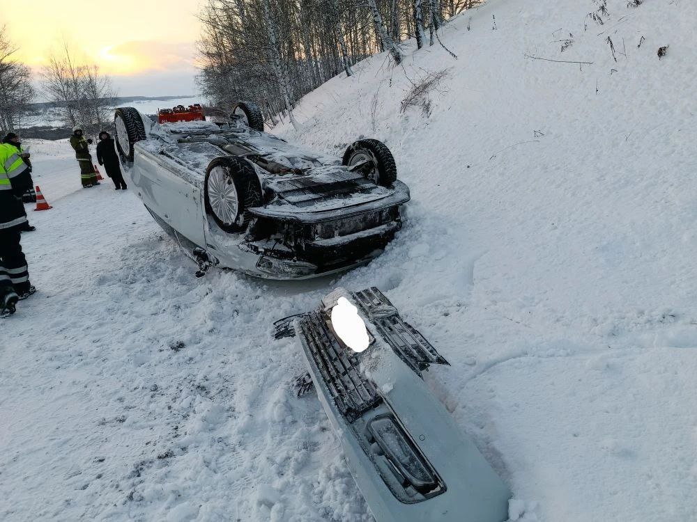6 января в Клявлинском районе Самарской области Volkswagen Polo съехал в придорожный кювет и опрокинулся.