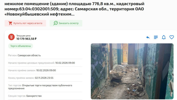 Ранее здание нефтехимкомбината в Самарской области выставили на торги за 10,1 млн рублей.