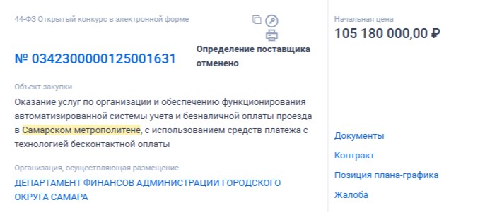 Заказчиком работ выступал МП «Самарский метрополитен». Проект оценивался как один из самых дорогостоящих в сфере модернизации городского транспорта за последнее время. Начальная (максимальная) цена контракта составляла внушительную сумму — 105 миллионов 180 тысяч рублей. Предполагалось, что эти средства пойдут на внедрение системы учета и безналичной оплаты проезда с использованием бесконтактных технологий нового поколения, включая возможность прохода через турникеты по QR-кодам. Это должно было сделать поездки в метро более удобными для тех, кто привык пользоваться мобильными сервисами, и оптимизировать систему учета пассажиропотока.