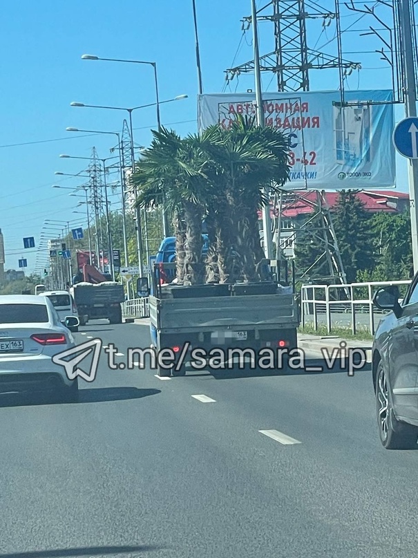 В Самару привезли необычные для региона деревья. Машина с пальмами была замечена на дорогах областной столицы.