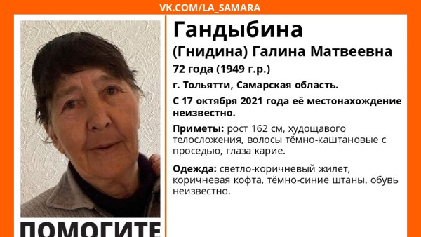 Галина Гандыбина (Гнидина) пропала в Тольятти в воскресенье, 17 октября. Из дома женщина ушла в 13:10, с тех пор о ней ничего не известно.