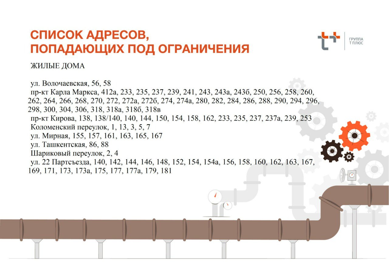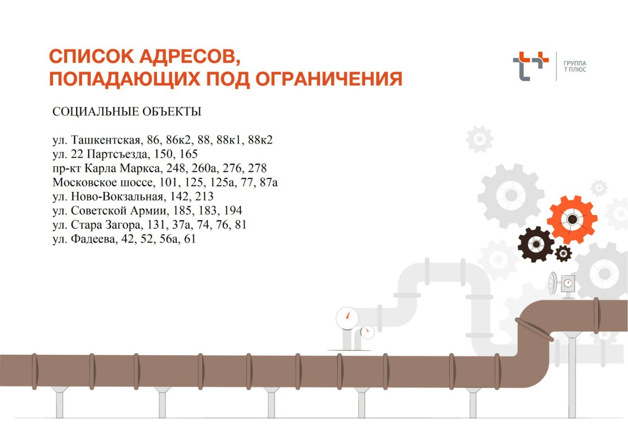 Работы на теплосетях от Самарской ТЭЦ затронут жителей Октябрьского, Советского и Промышленного районов. Плановые мероприятия направлены на повышение надежности теплоснабжения почти 300 жилых и нежилых объектов. В результате на 22 улицах возможно временное снижение температуры теплоносителя — все адреса отмечены в карточках.