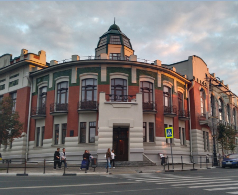 Здание было возведено в 1913–1914 годах по проекту городского архитектора Самары Дмитрия Вернера в стиле модерн. Именно этому направлению в архитектуре, которое было чрезвычайно модным в дореволюционной Самаре, будет посвящено ещё одно экспозиционное пространство военного музея.