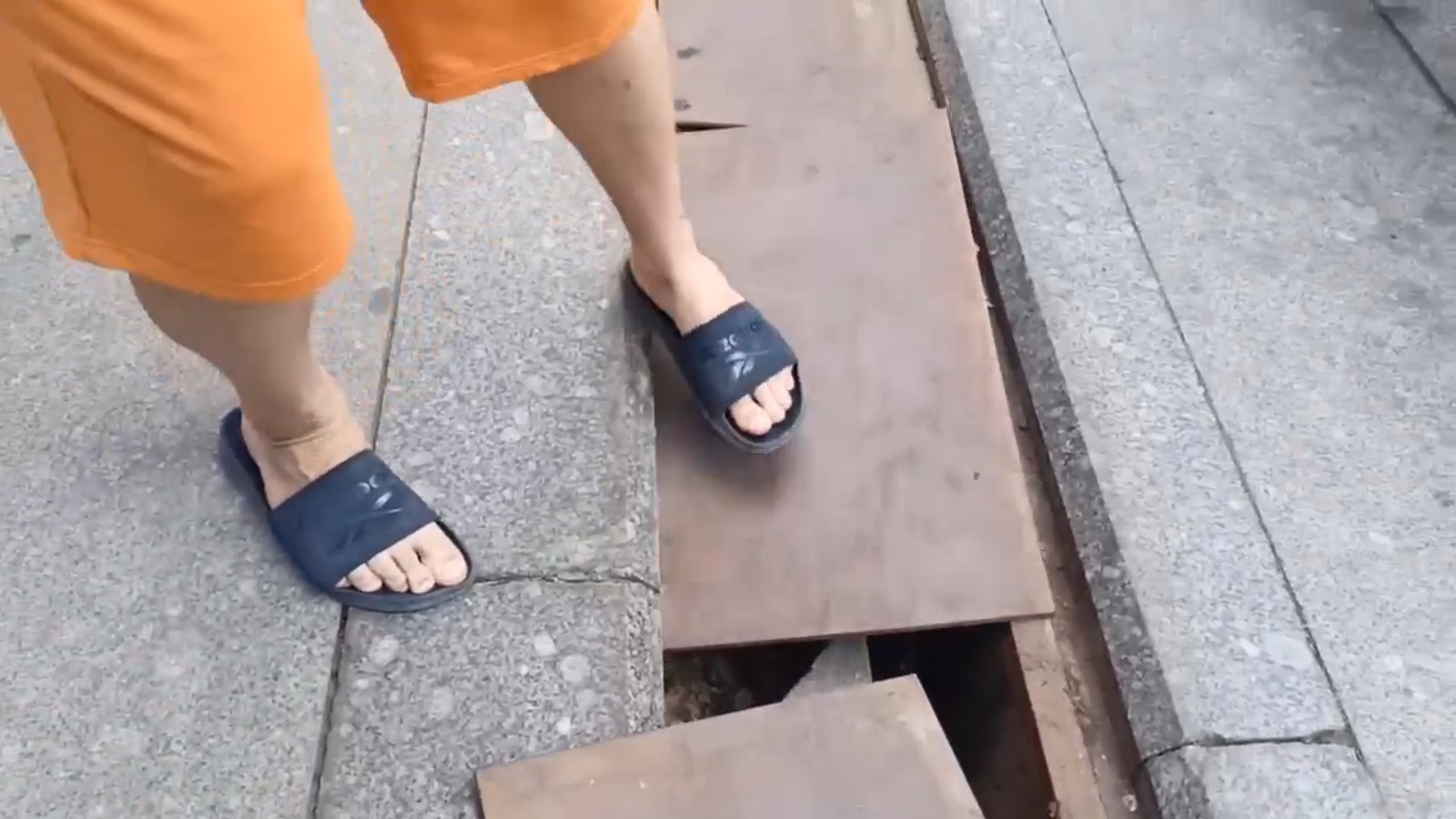 Речь идет об участке между улицами Куйбышева и Фрунзе. Сейчас здесь идут ремонтные работы, и людям приходится передвигаться по свободной части. На отрезке находится ливневая канализация. Она закрыта металлическими пластинами, которые никак не закреплены и проваливаются под весом человека.