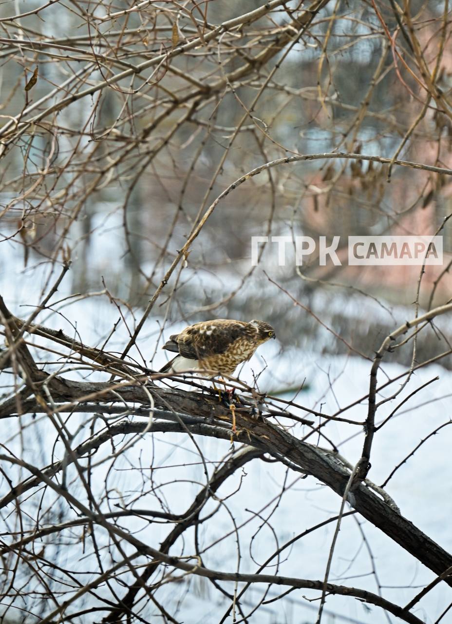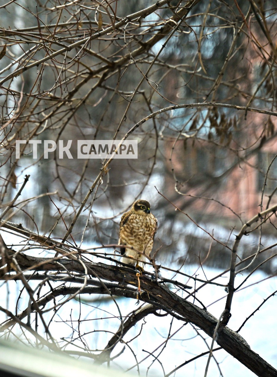 Жители Самары стали свидетелями редкого для городской среды явления. Во дворе многоквартирного дома был замечен ястреб‑перепелятник — небольшая хищная птица, обычно избегающая плотной застройки.