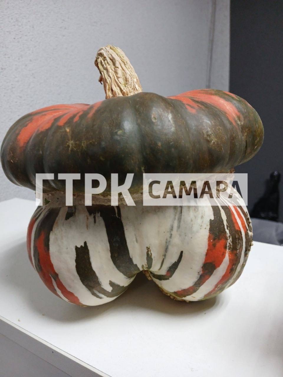 Самарские дачники и огородники продолжают собирать остатки урожая, причем некоторые — диковинные. На одном из участков областной столицы выросла тыква, которая не могла остаться без особого внимания. Фотографии пестрой «красавицы» удивительной формы сделал мобильный корреспондент ГТРК Самара.